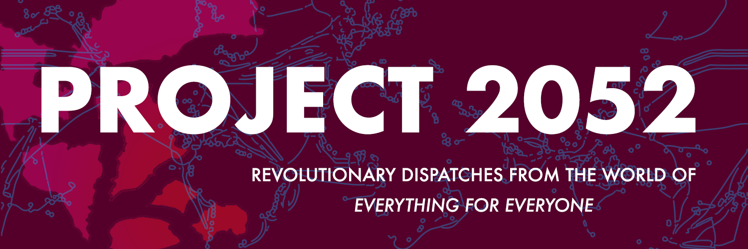 a website of revolutionary speculative short fiction, visual art, and poetry, set in the world of Everything for Everyone: An Oral History of the New York Commune, 2052–2072.
